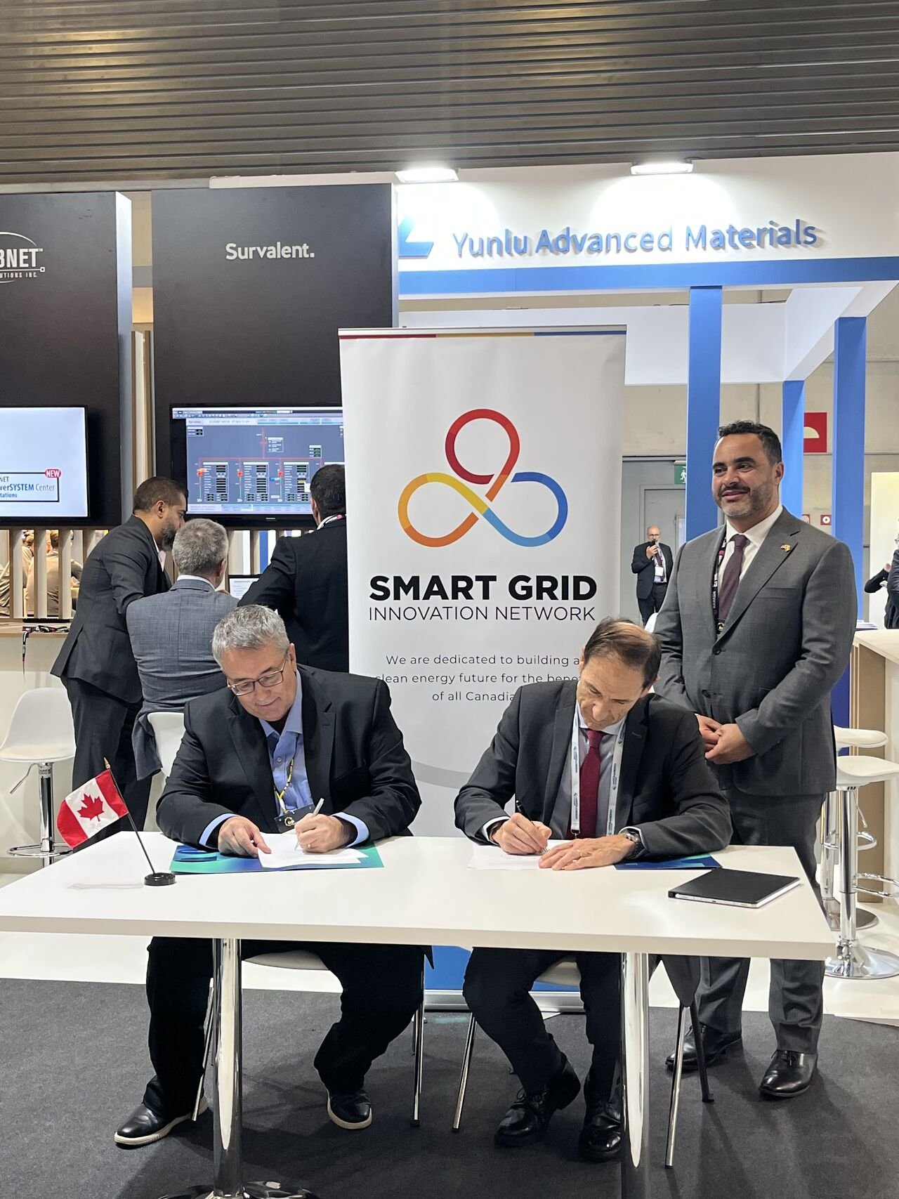 A significant outcome of the mission was the signing of a Memorandum of Understanding (MOU) between SGIN and the Basque Energy Cluster. Both SGIN and the Basque entered this agreement because they recognize the critical role of advancing and implementing holistic, clean and sustainable energy related technologies and services to support Canada’s transition towards net-zero. Both organizations agreed to cooperate on a non-exclusive basis, focusing on providing strategic advice and services, supporting each other's mandates as and where possible, to enhance the contribution that each organization can make to Canada and Spain’s energy sector. Below is a picture of both parties signing the MOU during the Canadian reception at Enlit Europe.